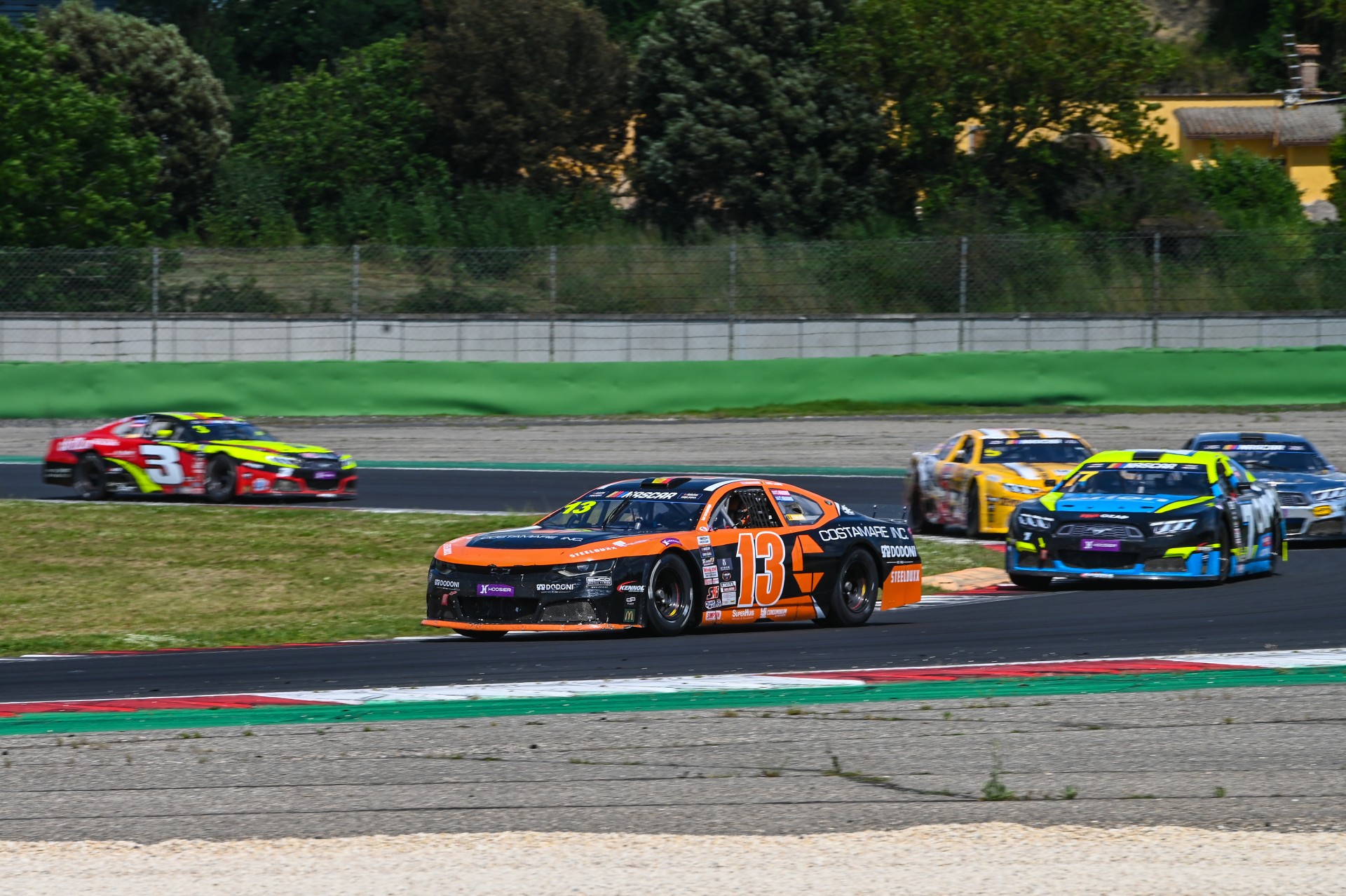 Thomas Krasonis (#13) leads Martin Doubek (#7), Gianmarco Ercoli (#11), Claudio Remigio Cappelli (#5) and Paul Jouffreau (#3) during the 2025 NASCAR GP Italy