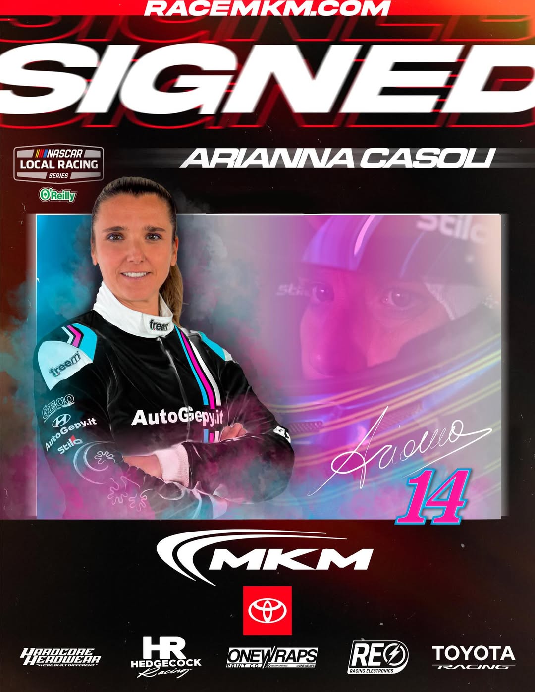Arianna Casoli returns to on-track competition in 2026 after she signed a three-race contract with MKM Racing Development in the NASCAR Local Racing Series.